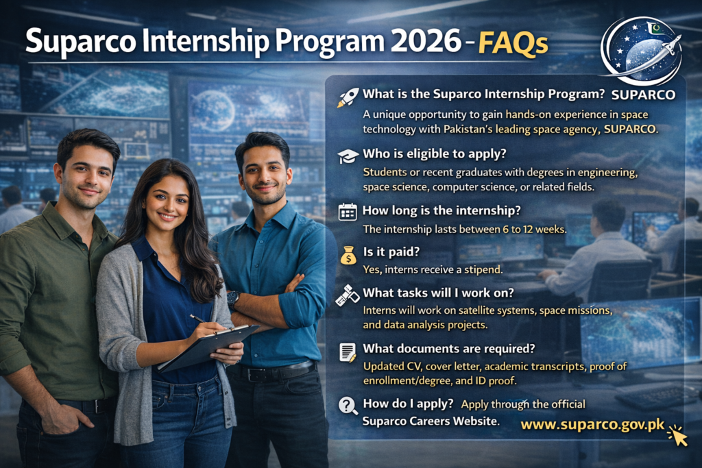 Are you ready to explore the infinite possibilities of space and technology? Apply for the Suparco Internship Program 2026 today and take the first step toward an exciting career with one of Pakistan’s most innovative institutions